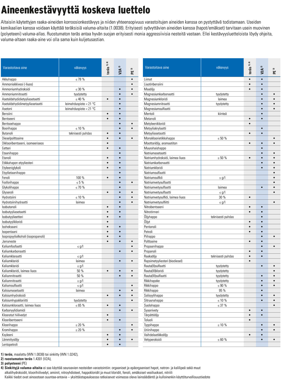 - Melko hyvän osviitan saa jo siitä, että tarkistaa mistä materiaalista kyseisen aineen varsinainen säilytysastia on valmistettu. Yleensä esimerkiksi voimakkaat hapot on pakattu muovisiin kanistereihin tai IBC-kontteihin, jolloin myös valuma-altaan materiaalina muovi on paras vaihtoehto, vinkkaa Porraskorpi.