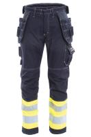 Hitsauskäyttöön hyväksytyt ja huomiovaateluokkaan 1 sertifioidut palosuojatut työhousut, polvitaskut palosuojattua CORDURAA®. Kestävä ja miellyttävä palosuojakäsitelty kangas, edessä hitsausvahvikkeet. Testattu 50 pesukierrosta teollisessa pesussa.