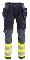 Kaksi etutaskua / Kaksi CORDURA®-vahvistettua takataskua, joissa läppä ja piilopainonappikiinnitys / Tuplavahvistettu haarasauma / Vasaralenkki / CORDURA®-vahvistettu taittomittatasku, jossa läppä ja painonappikiinnitys, sekä nappi ja lenkki puukolle / Reisitasku, jossa läppä ja piilopainonappikiinnitys, puhelintasku, jossa läppä ja tarrakiinnitys, D-rengas ja henkilökorttitasku / Sisäpuolelle avautuvat CORDURA®-vahvistetut polvitaskut / Polvitaskuissa polvisuojien korkeudensäätö / Aramidi-vahvistetut reisipaneelit / CORDURA®-vahvistetut lahkeensuut / Standardien EN 61482-1-2 luokka 1, EN 61482-1-1 ATPV 10,6 cal/cm² HAF 80,4% (katso valokaaritaulukosta standardin EN 61482-1-2 luokka 2 mukaan sertifioidut vaateyhdistelmät ja open arc -sertifioidut vaatteet standardin EN 61482-1-1 mukaisesti), EN ISO 11612 A1 B1 C1 E2 F1, EN ISO 11611 A1 luokka 1, EN 1149-5, EN ISO 20471 luokan 1 mukainen ja EN 14404 yhdessä polvisuojien 124292 kanssa / Testattu teollisen pesustandardin ISO 15797 mukaisesti / ÖKO-TEX® -sertifioitu.