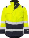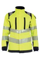 Veden- ja tuulenpitävä sekä hengittävä / Likaa ,öljyä- ja vettä hylkivä / Irrotettava ja säädettävä huppu / Edessä lista ja kaksisuuntainen vetoketju kauluksen yläreunaan asti, piilotarrakiinnityksellä / 2 rintataskua listoilla sekä vetoketjuilla, toisessa D-lenkki / Vetoketjullinen karttatasku sisäpuolella sekä sisäpuolella puhelintasku, johon pääsy ulkopuolelta / kaksi povitaskua, toinen vetoketjulla / Kaksi fleecevuorillista vetoketjullista etutaskua / Säädettävät hihansuut sekä hihansuissa sisäpuolella joustavat rannekkeet / Pidennetty takaosa / Säädettävä helma nyöreillä / Vetoketju vuorissa siirtokuvia ja brodeerauksia varten / Vesipilariarvo 10 000 mm / Hengittävyys RET 14,44 / Hyväksytty standardien EN 61482-1-2 APC 2, EN 61482-1-1 ELIM: 27 cal/cm², EN ISO 11612 A1 A2 B1 C1 F1, EN ISO 11611 A1 A2 class 1, EN 1149-5, EN 13034 Type PB [6], EN ISO 20471 luokka 2 koissa XS-S ja luokka 3 koissa M-4XL ja EN 343 luokka 3/4 / Hyväksynnät 25 pesun jälkeen / ÖKO-TEX® sertifioitu.