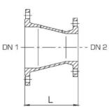 GJS-500-pallografiittivalurautainen laippasupistusyhde. Laipat PN10. Pulttiliitos.