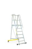 Yhdistetyt alumiinituet, jotta voit katsoa molemmille puolille yhdellä kädellä kiinni pitäen. FDS-ruuveilla toteutettu innovatiivinen kiinnitysteknologia tarjoaa vakaan rakenteen minimaalisella joustolla ja todella pitkällä käyttöiällä. Kuljetuksen helpottamiseksi 6- ja 8-askelmaisissa malleissa on pyörät tukipuolella.