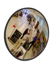 Teollisuuspeili oikeassa paikassa estää onnettomuuksia ja parantaa turvallisuutta, kun näkyvyys on hämärtynyt esim. kuorma-autokäytävät, kapeat uloskäynnit, tiheät rakennukset ja tien risteykset. Peililasi iskunkestävää akryyliä, taustalla UV-stabiloitua polystyreeniä. Punainen reunus tekee peilistä helposti havaittavan. Varustettu galvanoidulla liittimellä asennettavaksi tavallisiin 50-76 mm putkiin tai julkisivuun. Voidaan käyttää sekä sisällä että ulkona.