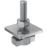 Sähkösinkitty kiinnitysmutteri. Voidaan siirtää (myös silloin, kun sijoitetaan kiinnikkeen yläpuolelle). Voidaan asentaa ja irrottaa ilman työkaluja. Sisäkierre kierretangon kiinnittämistä varten.