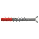 FSH - Uppokanta. Torx-30. Keltakromattu. CE-merkitty. Kiinnityksiin betonissa, tiilessä, kevytbetonissa, luonnonkivessä, kaasubetonissa ja reikätiilessä. Puusta, metallista ja keinomateriaalista valmistettujen ikkunan- ja ovenpuitteiden asennukseen. FS-H-betoniruuvin yksinkertainen ja nopea asennus säästää aikaa. Pysyvä ja jännitteetön kiinnitys pitkin välein. Pienestä läpimitasta huolimatta suuri kuormitettavuus. Ruuvin pintakäsittely helpottaa asentamista. Voidaan käyttää turvallisuusluokassa 2. Suositellut kuormitusarvot betonissa C20/25 - 30 mm:n asennussyvyydellä Vetokuormitus/Leikkauskuormitus 2,5 kN, 40 mm:n asennussyvyydellä Vetokuormitus/Leikkauskuormitus 3,8/2,5.