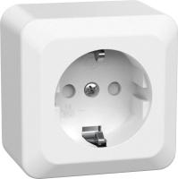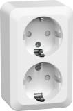 Pinta-asennettavassa pistorasiassa on kosketussuoja. Kaksi liitäntäpaikkaa ruuviliitosta kohti. Pohjalevyssä on valmiit reikäpaikat sisääntulolle 16 mm putkille. Maadoitettu.