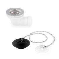 Täydellinen sarja, joka koostuu pullovesilukosta ja pohjaventtiilistä, joustavasta ja ulos vedettävästä poistoletkusta sekä kumitulpasta.