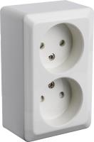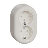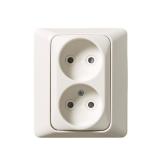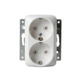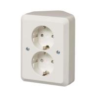 Pinta-asennettavassa pistorasiassa on kosketussuoja. Kaksi liitäntäpaikkaa ruuviliitosta kohti. Pohjalevyssä on valmiit reikäpaikat sisääntulolle 16 mm putkille. Maadoittamaton.