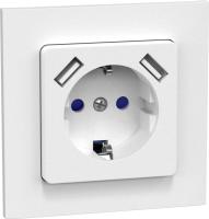 Uppoasennettavassa pistorasiassa on kosketussuoja sekä 2 kpl USB-porttia, jotka tarjoavat yhteensä 2,1 A erilaisten laitteiden lataukseen. USB-porttien kasvattaman syvyyden johdosta ei sovi Connect 2 Home -korotuskehykseen. Mukana myös kiinnityskynnet. Kiinnityskynsiä käytetään asennettaessa vanhempiin asennuksiin. Kynsisarja toimitetaan ruuveilla. Maadoitettu.