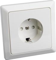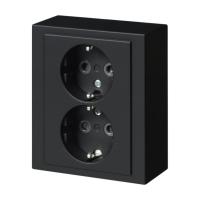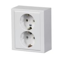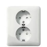 Pinta-asennettavassa pistorasiassa on kosketussuoja. Kaksi liitäntäpaikkaa ruuviliitosta kohti. Pohjalevyssä on valmiit reikäpaikat sisääntulolle 16 mm putkille. Maadoitettu.
