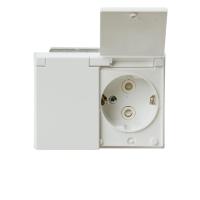 Pinta-asennettavassa pistorasiassa on kosketussuoja ja itsesulkeutuva kansi. Soveltuu myös ulkokäyttöön. Ulkokäyttöön asennettaessa edellä oltava vikavirtasuojakytkin.
