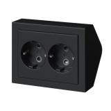 Kulmapistorasia kosketussuojalla pinta-asennettavaksi kulmiin tai esimerkiksi keittiön kaapiston alle vaakaan. Takana valmiiksi merkityt sisääntulopaikat, 16mm tai 20mm. Sähkön voi tuoda myös pintavetona kehyksen sivulta. Pistorasia on esiasennettu kulmakehykseen, mukaan lukien vedonpoisto. Useita kulmapistorasioita voidaan asentaa vierekkäin.