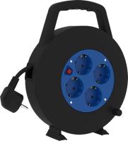 Itseseisova 4-osainen kaapelikela pienitehoisille sähkölaitteille sisäkäyttöön. Kaapelikelassa on ergonominen kantokahvalla ja tukeva muovirunko.
