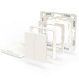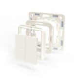 Langaton blisteripakattu tuotepaketti päälle/pois kytkentään, joka sisältää langattoman ja paristottoman F2T55E-wg painikkeen ja langattoman FL62-230V impulssireleen.F2T55E-wg: Langaton ja paristoton 2-kanavainen painike E-Design55 kehyksellä, kehyksen ulkomitat 80x80mm, vivun mitat 55x55mm, korkeus 15mm (vipu käy myös Exxact kehykseen). Luo tarvittavan energian langattoman signaalin lähettämiseen painiketta painettaessa, joten ei tarvita johtoja, paristoja eikä painikkeessa ole valmiustilan kulutusta. 1-osaisella vivulla. Langaton ja paristoton painike 1-osaisella vivulla, voi lähettää kaksi eri signaalia, painikkeen ylä- ja alareunaa painettaessa. Langaton painike voidaan kiinnittää joko ruuvaamalla mille tahansa tasaiselle pinnalle tai liimaamalla mukana toimitettavalla tarrakalvolla seinälle, lasipinnoille tai huonekaluihin. Kojerasiaan kiinnitys uppokantaisilla ruuveilla.FL62-230V: Langaton impulssirele esim. valaistuksen päälle/pois kytkentään, 10 A/250 V AC. 1 sulkeutuva (NO) potentiaalivapaa kosketin. 230 V LED- ja ESL-kuorma enintään 200 W, hehku- ja halogeenilamppukuorma enintään 1000 W. Uppoasennukseen. Pituus 49 mm, leveys 51 mm, syvyys 20 mm. Valmiustilan kulutus vain 0,4 wattia. Pistoliittimillä, johtimen poikkipinnoille 0,2 mm2 - 2,5 mm2. Yhteen releeseen voidaan opettaa 32 eri langatonta yleispainiketta (päälle/pois painikkeen samalta puolelta), suuntapainiketta (päälle/pois painikkeen vastakkaisilta puolilta), keskusohjauspainiketta tai liiketunnistinta, helpon naputustekniikan avulla. Releessä johdollisen painikkeen tulo, jolloin langattomalla painikkeella laitteen sisäisen antennin kautta ohjauksen lisäksi, tätä langatonta relettä voidaan ohjata perinteisellä johdotetulla jousipalautteisella 230V painikkeella. Merkkivalollisen painikkeen käyttö ei ole sallittua.