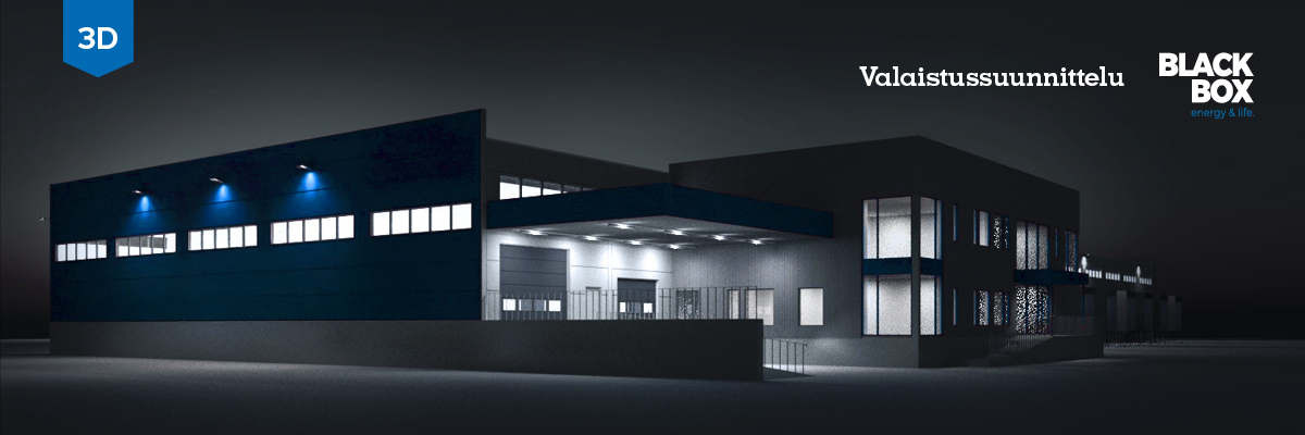 Black Box on kattava valaistuksen suunnittelu- ja hankintapalvelu sinulle, joka suunnittelet, hallinnoit ja rakennat. Me teemme valaistuksen ja digitaaliset mallinnokset. Sinä saat valaisintuotteet ja digitaalisen valaistuksen suunnittelun täydellisenä palveluna.