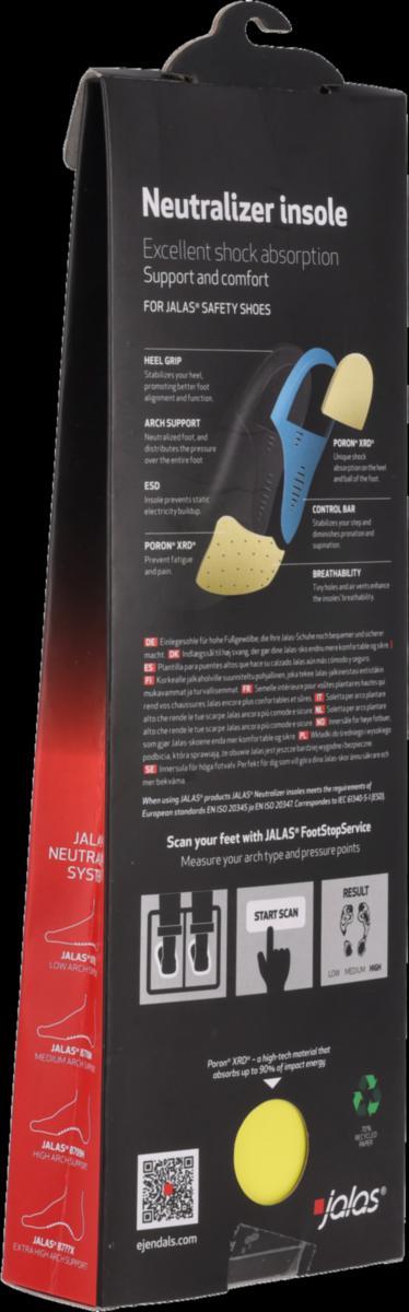 Korkealle jalkaholville suunniteltu pohjallinen, joka tekee JALAS-jalkineistasi mukavammat ja turvallisemmat. Poron® XRD® -materiaali päkiän ja kantapään kohdalla vaimentaa jopa 90 prosenttia iskuenergiasta ja tarjoaa erinomaisen iskunvaimennuksen. Tämä vähentää loukkaantumisriskiä ja parantaa käyttömukavuutta. Pohjallinen on anatomisesti muotoiltu, ESD-hyväksytty ja hyväksytty käytettäväksi kaikissa JALAS-turvajalkineissa. Saatavilla 17 koossa. Poista alkuperäiset pohjalliset ennen käyttöä. JALAS FootStopService (FSS) -skanneri auttaa valitsemaan jaloillesi parhaiten sopivat pohjalliset.