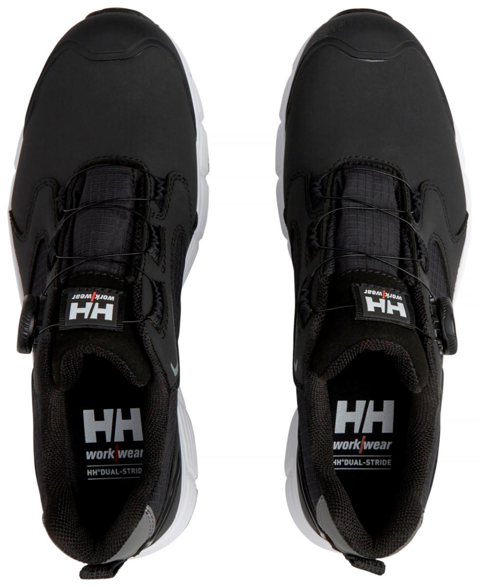 HH Dual-Stride® -pohjamateriaali tarjoaa optimaalisen iskunvaimennuksen, vakauden ja liike-energian palautuksen. Kantapäässä on sisäänrakennettu eTPU -vaimennus. Ulkoinen TPU -kärkivahvike, komposiittinaulaanastumissuoja sekä -varvassuoja suojaavat käyttäjää. BOA L6 (Right & Left) -kiinnitysjärjestelmä. Kosteutta siirtävä ja hengittävä verkkovuori on valmistettu vähintään 50% kierrätetyistä materiaaleista. Päällinen kestävää mikrokuitua ja ripstop -polyesteriä. Pitävä ulkopohja on valmistetty Helly Grip® -nitriilikumista. Se kestää kulutusta, öljyä ja useita kemikaaleja. Antistaattinen ja ESD. EN ISO 20345:2022, S3L FO HRO SR, BS EN IEC 61340-4-3:2018 -ESD.
