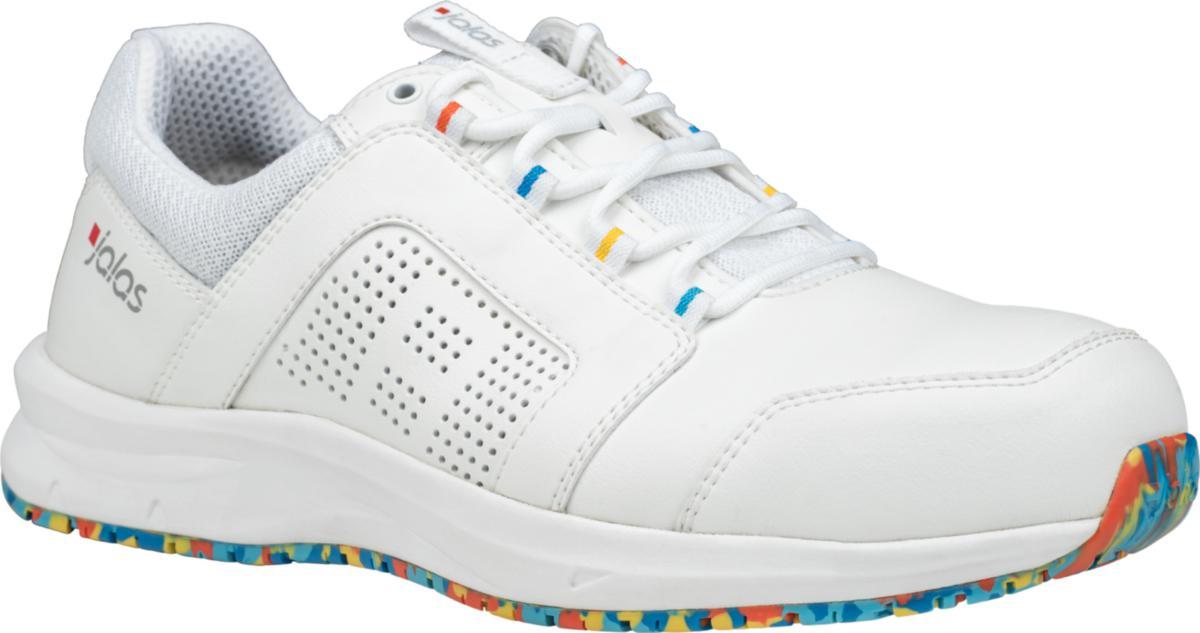 Turvallinen ja urheilullinen työ- ja vapaa-ajan jalkine. Hyvin kevyt ja mukava, monivärinen ulkopohja, edistyksellinen PORON XRD -iskunvaimennus, varvassuoja sekä pehmeä ja joustava tekstiilinen naulaanastumisssuoja. Toimivassa ulkopohjassa on hyvin tehokas pitoa parantava kuviointi, ja se on valmistettu erityisestä kestävästä nitriilikumista. JALAS® Tempus -jalkineet ovat ESD-hyväksytyt ja antistaattiset jalkineet ESD-suojattuihin työympäristöihin.