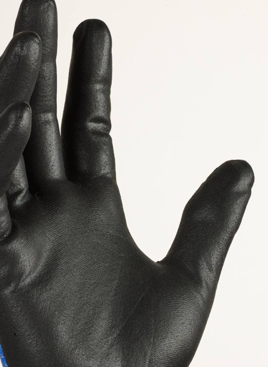 Synteettinen käsine, nitriilivaahto, kämmenestä pinnoitettu, karhennettu vaahto, 18 gg, nailon, Cat. II, musta, sininen, erittäin ohut, DMF (DMFa)-vapaa, ei sisällä lateksia, silicone-free, hengittävä kämmenselkä, vettä ja öljyä hylkivä kämmenosa.
