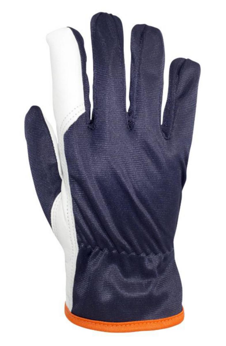Kevyt työkäsine, jonka kämmenpuoli on pehmeää ja notkeaa lampaannahkaa. Kämmenselkä synteettistä materiaalia, jonka harjattu sisäpinta tuntuu miellyttävältä ihoa vasten. Keystonepeukalon ansiosta käsine istuu ergonomisesti erittäin hyvin. Vahvistettu etusormi.