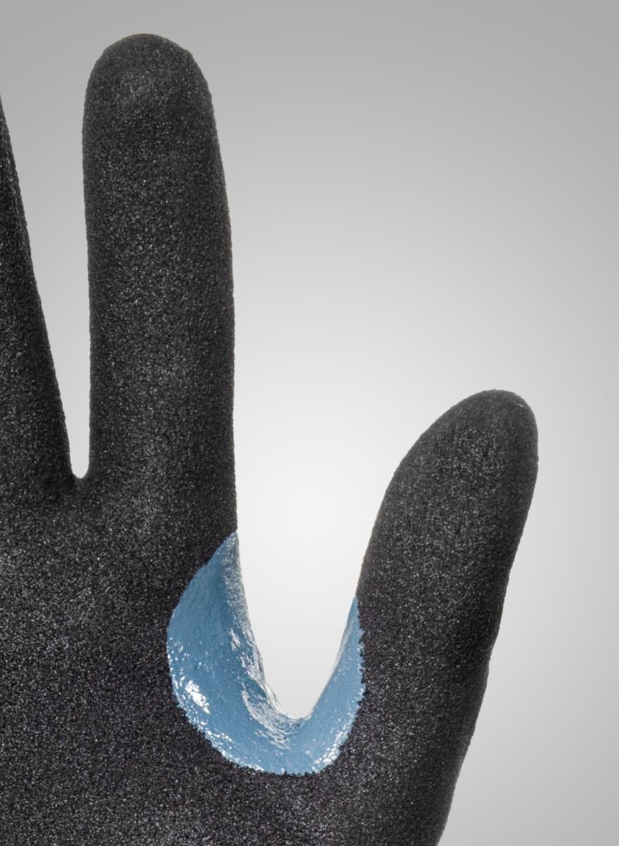 Joustava viiltosuojakäsine nylonista ja elastaanista, upotettu nitriilivaahtoon ja DMF-vapaa PU. Täysin upotettu, kaksinkertainen. Lasikuitulanka. Anatomisesti suunniteltu. Erittäin hyvä pito, mukavuus ja suoja käsillesi.