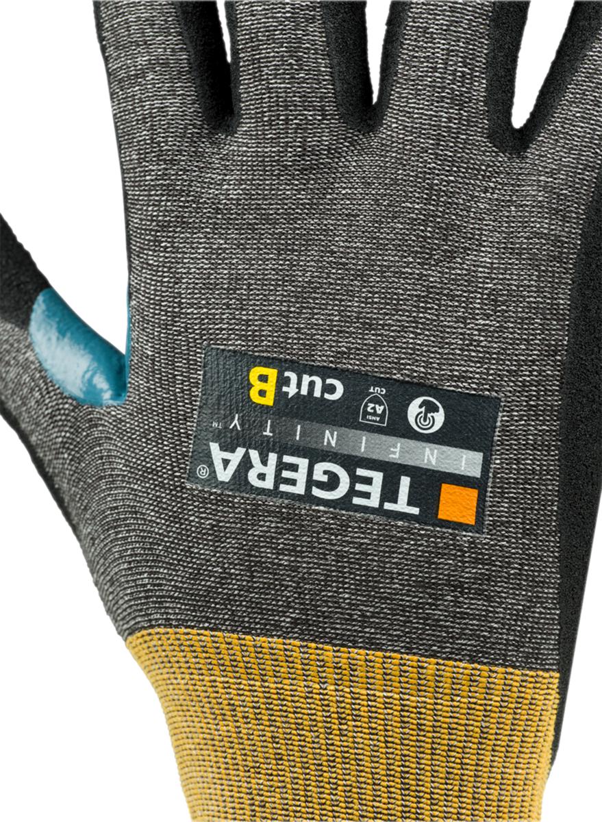 Uuden ajan viiltosuojakäsine, joka yhdistää mukavuuden ja turvallisuuden ennenkuulumattomalla tavalla. Soveltuu kosketusnäytölle. Muotoon ommellut sormet ja CRF®-neulos (18 gg) sekä Tegeran vallankumouksellinen Infinity-pinnoite tekevät tästä käsineestä tosi-ammattilaisen valinnan. Vahvistettu peukalohanka lisäävät mukavuutta ja kestävyyttä siellä, missä käsineen kulutus on kovin. Käyttökohteita esimerkiksi asennus- ja korjaustyöt, rakennustyöt, pakkaus- ja logistiikkatyöt Viiltosuojaluokka B. EN 388:2016.
