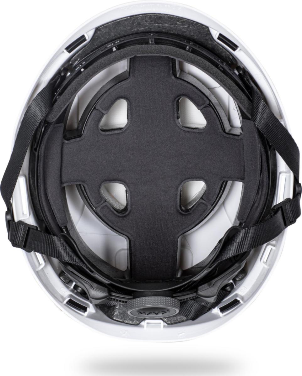 Hihnasto pitää kypärän päässä vaikeissakin työasennoissa. Hihnaston laajojen säätöjen ansiosta hyvä yhteensopivuus kuulonsuojainten kanssa. Leuan alueella eco-nahkainen, hypoallergeeninen ja pestävä suojus, joka tarjoaa poikkeuksellista käyttömukavuutta, ja ehkäisee ihoärsytystä. Pään muotojen mukaan mukautuva säätö, jonka ansiosta pääpanta muotoutuu niskan alueella täydellisesti pään muotojen mukaan. Soveltuu 53-63 cm pään ympärysmitalle, ja mitoitus säädettävissä lisäksi korkeuden ja niskaosan kulman osalta. Leukahihnassa Ring To Hook -lenkki, jonka avulla kypärän voi kiinnittää työvaatetukseen tai varustereppuun, kun se ei ole päässä. Pehmusteet DRY+ materiaalia, jossa antibakteerinen hopeaionikäsittely pitää kypärän raikkaampana. Siirtää tehokkaasti kosteutta tarjoten mukavuutta koko työpäivän ajaksi, ja kuivuu erittäin nopeasti.