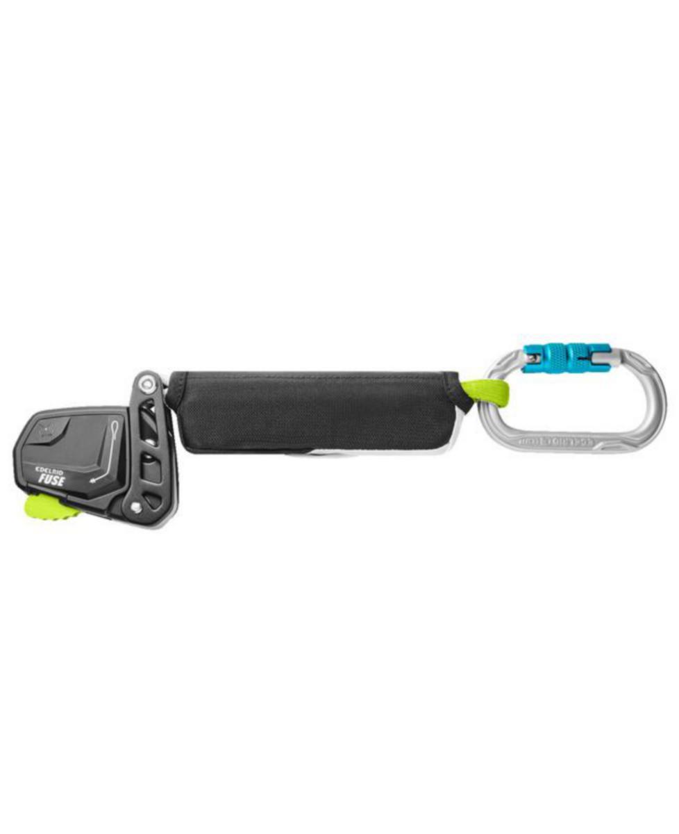Nykäyksenvaimennin Edelrid Fuse putoamisen pysäyttävän köysitarraimen ja kokovaljaan rinta- tai selkäkiinnityspisteen väliin työkäyttöön. Raskaiden työkalujen/varusteiden kanssa toimimiseen sekä pelastustyöhön soveltuva malli, joka mahdollistaa paripelastamisen 50-220 kg kokonaiskuormalla. Erittäin kevyt rakenne. Pituus: 21 cm. Lisäsertifioitu 140 kg käyttäjille asti (ainoana kokonaisuutena markkinoilla, sekä kansainväliseen käyttöön. Kokonaisuus vaimentaa putoamistilanteessa järjestelmään ja käyttäjään kohdistuvat nykäysvoimat 30 % alle standardin vaatimustason repeytymällä auki. Varustettu avattavalla suojuksella, joten säännöllinen tarkastaminen on helppoa ja nopeaa.