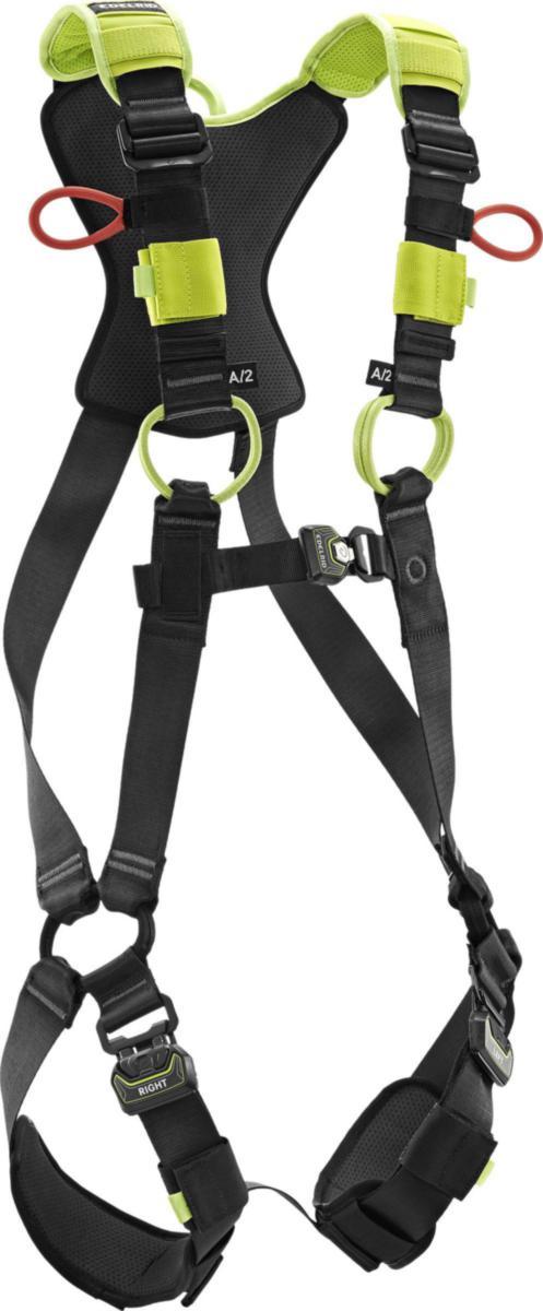 Valjaat on helppo pukea kuin takki, ja pikasoljelliset jalkalenkit sekä pikasoljellinen etukiinnitys tekevät käytöstä nopeaa. Putoamisen pysäyttävän järjestelmän kiinnityspisteet rinnassa ja selässä.