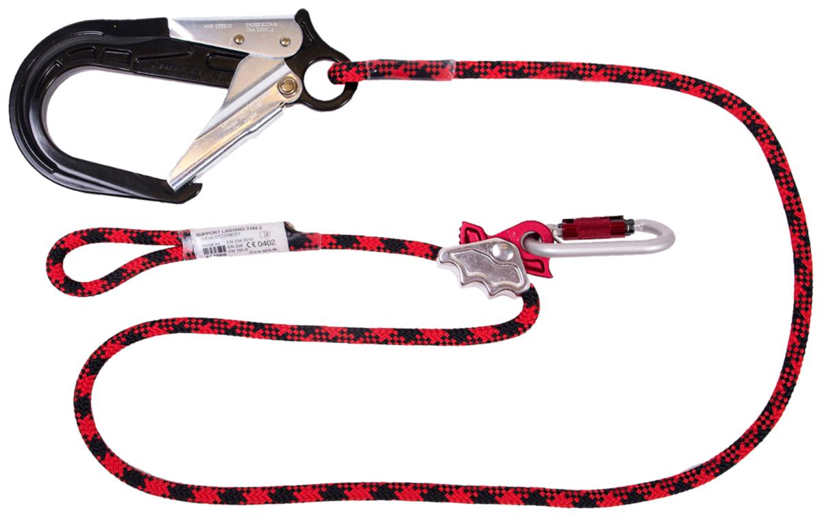 Tukiköysi, joka voidaan säätää joustavasti yhdellä kädellä. Ainutlaatuinen tukiköysi sertifioitu laajalle käyttöalueelle. Köysilukko anodisoitua alumiinia. 1 kpl iso 63 mm haka ja 1 kpl 9684 kolmoislukitteinen karbiinihaka. 12 mm ydinköysiUlkokuori ja ydin polyamidia Venymä 3%.