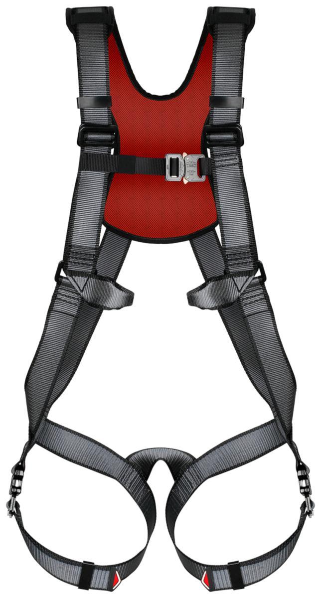 Putoamissuojaimen liitäntäpiste sijaitsee rinnassa, liukuvat kangassilmukat.