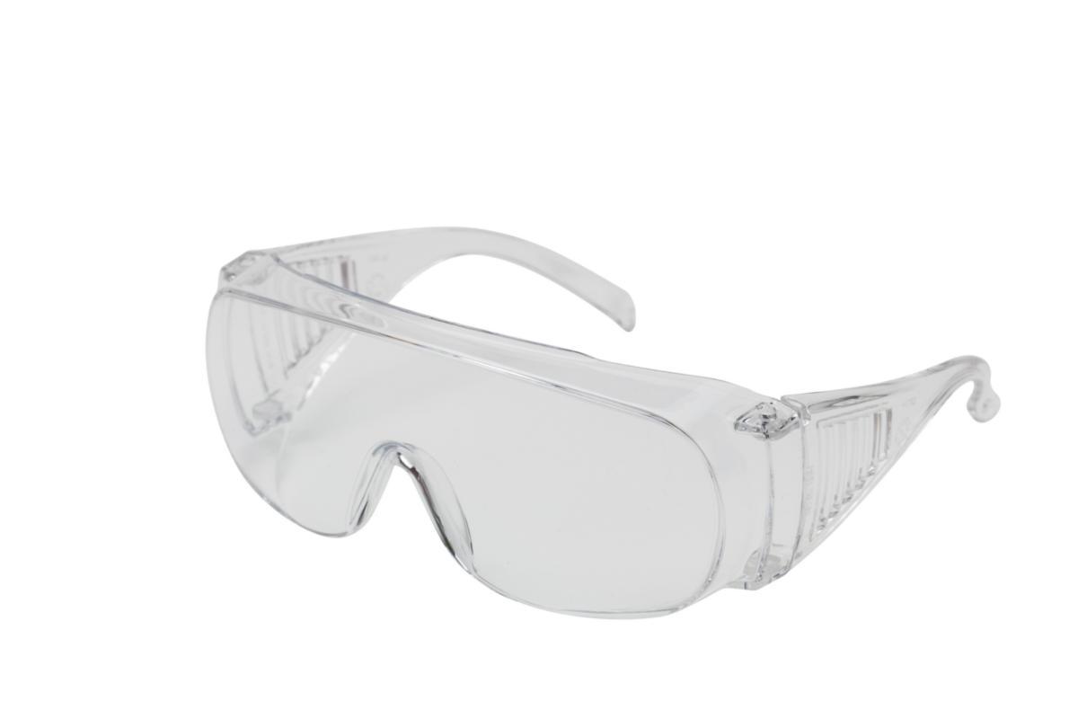 Suojalasit joissa laaja linssi. Soveltuu vierailijalasiksi sekä silmälasien käyttäjille.