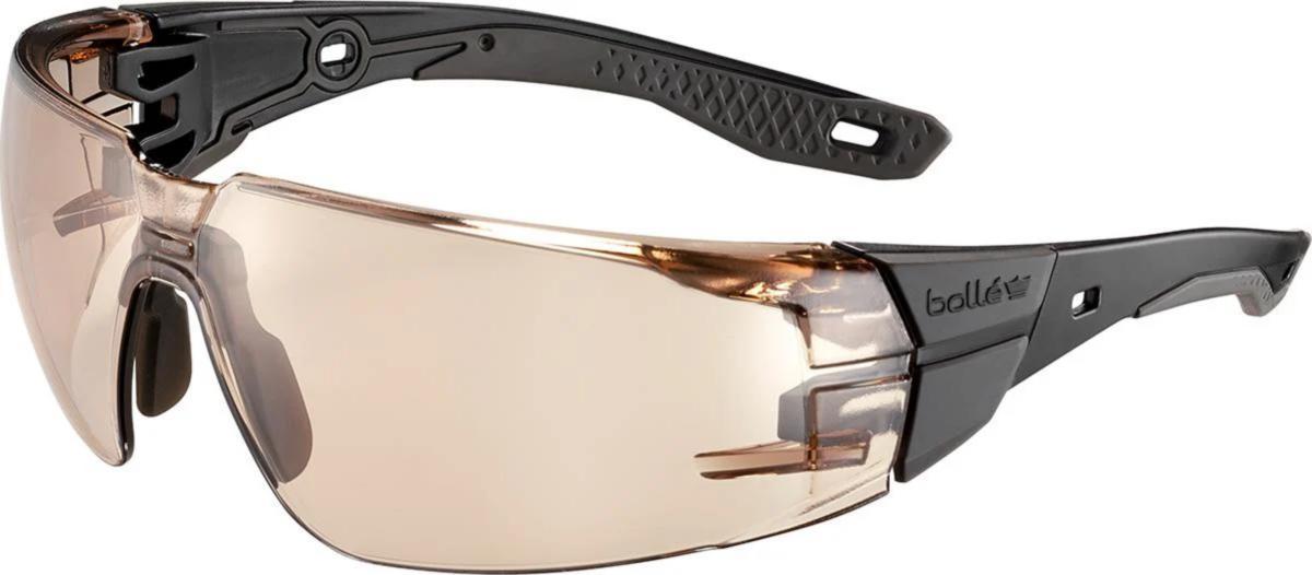 Työkäyttöön suunnitellut sankamalliset suojalasit tarjoavat laajan panoraamanäkymän ja erinomaisen käyttömukavuuden. Copper sävytetyt, PLATINUM-pinnoitetut linssit kestävät naarmut ja huurtumisen, kun taas non-slip-pinnoitetut, muotoon valetut sangat pitävät lasit tukevasti paikoillaan vaativissakin työasennoissa. Pehmeät, nenän muotoihin mukautuvat nenätyynyt viimeistelevät täydellisen istuvuuden. Sisä- ja ulkokäyttöön.