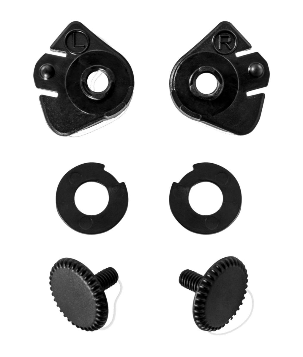 Varaosa ruuvikiinnikesarja Kask Superplasma -työkypäräsarjan visiireille ja Full Face kokokasvosuojaimille. Sisältää kypärässä oleviin koloihin painettavat adapterit, prikat ja työkaluvapaasti vain sormenpäillä käytettävät kiinnitysruuvit visiirille.