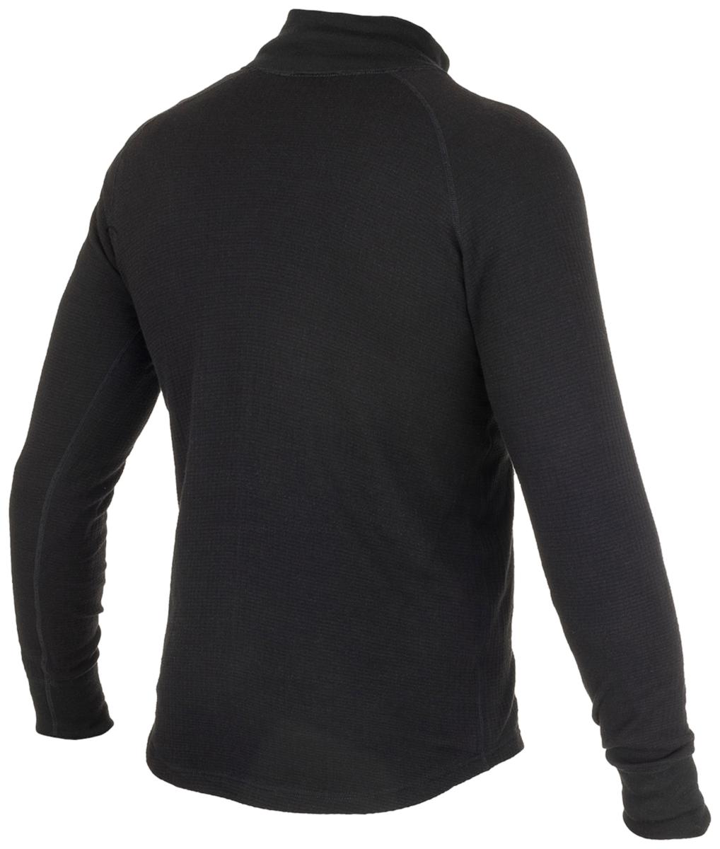 Puolikorkea vetoketjullinen kaulus. Erittäin pehmeä ja miellyttävä merinovilla lämmittää tehokkaasti. Sisäpuolen polyesteri siirtää kosteuden tehokkaasti. Vahvistetut kyynärpäät, peukaloaukot.