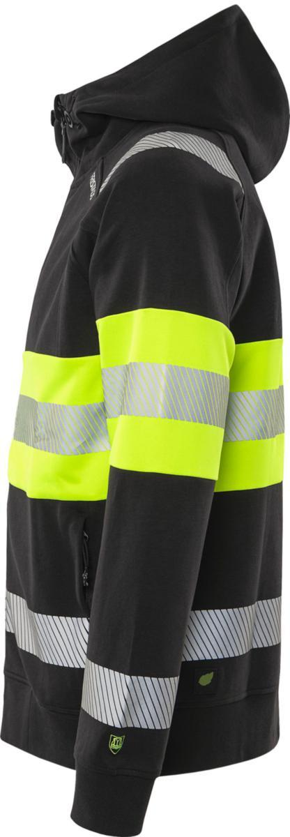 Luomupuuvilla ja kierrätetty materiaali / Kaksipuolinen stretch-materiaali / Segmentoitu heijastenauha paremman liikkumisvapauden saavuttamiseksi / Säädettävä huppu / Täyspitkä etuketju / Vetoketjullinen povitasku / 2 vetuketjullista etutaskua / Resori hihansuissa ja helmassa / Hyväksytty seuraavien standardien mukaan: EN ISO 20471 luokka 1 ja EN 13758-2 UPF 40+ UV-suoja / Sertifioinnit 25 pesukerran jälkeen / ÖKO-TEX® -sertifioitu.
