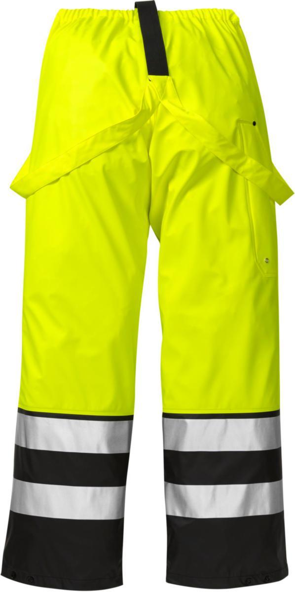 Stretch materiaali / Hitsatut saumat / Irroitettavat olkaimet / Joustava vyötärö / Aukot vapaasti riippuville taskuille / Taittomittatasku / Säädettävät lahkeensuut / Standardien EN ISO 20471 luokka 2 ja EN 343 luokka 3/1 mukainen / ÖKO-TEX® -sertifioitu.