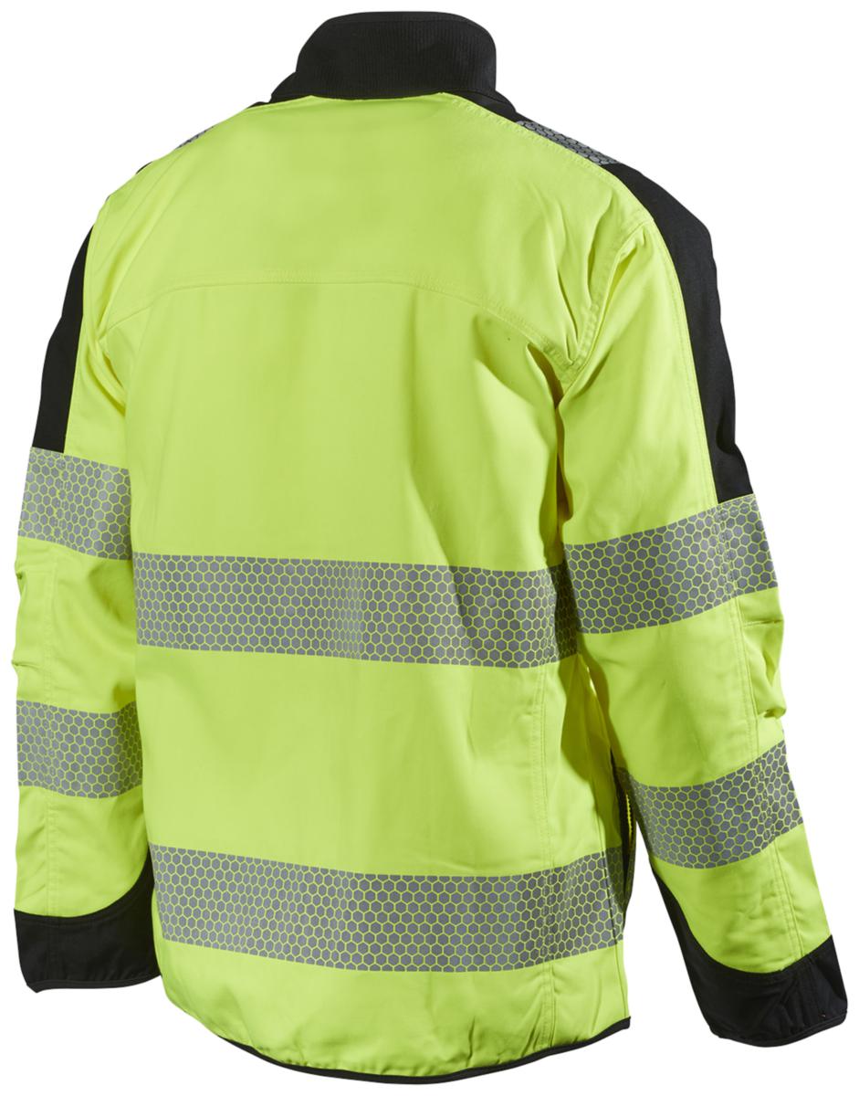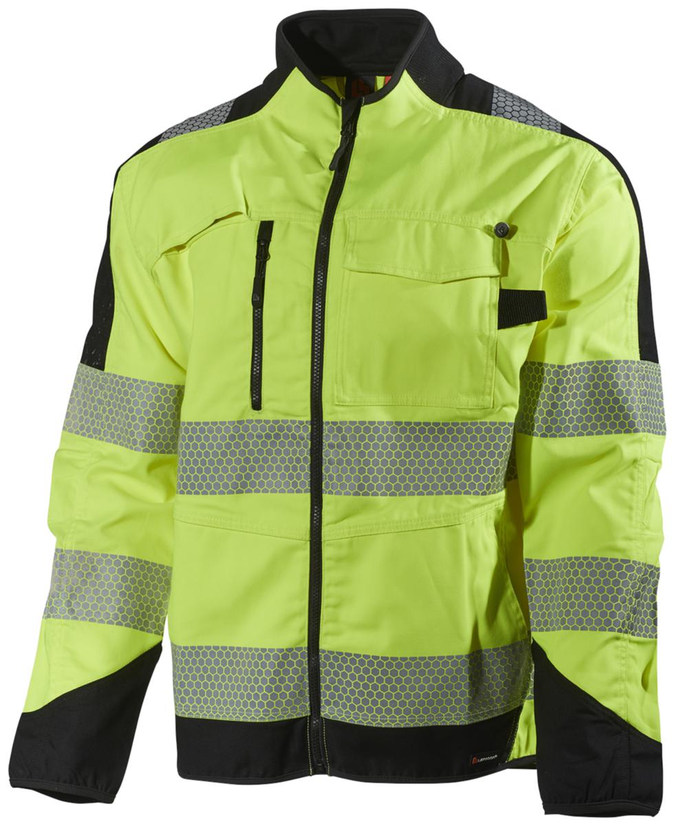 Työtakki huomiomateriaalia, vettä ja likaa hylkivä materiaali on erittäin kulutuskestävä.