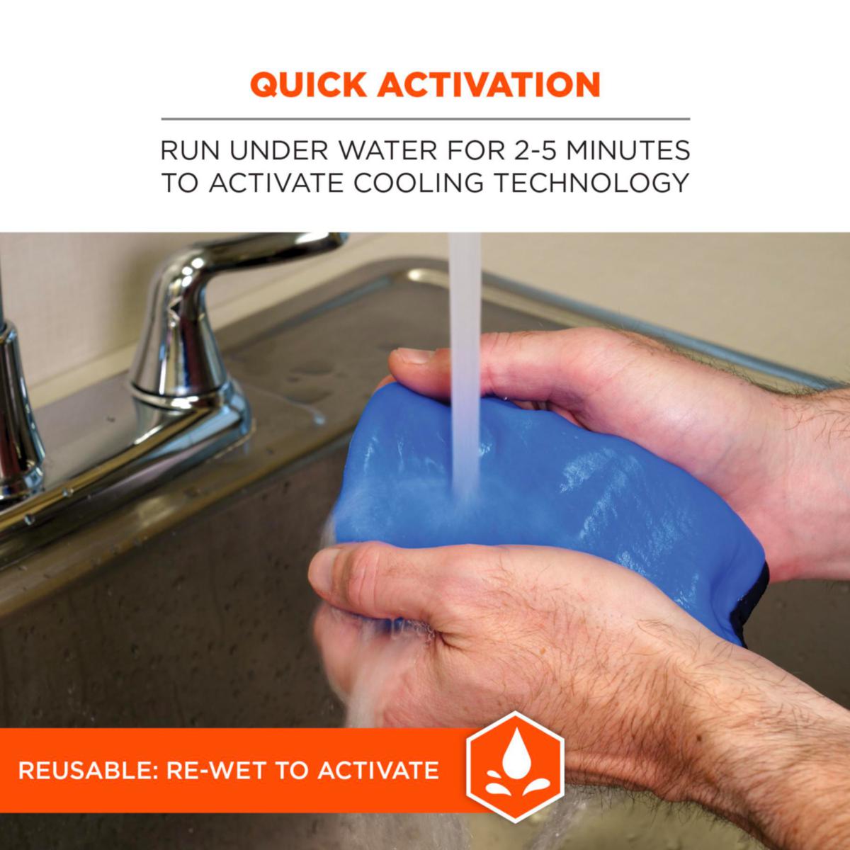 Edistyksellinen PVA-materiaali aktivoituu helposti ja nopeasti, kun sitä pidetään vedessä minuutin ajan. Kastele uudelleen uudelleenaktivointia varten. Tehokas haihdutusjäähdytysprosessi auttaa sinua pysymään viileänä. Kevyt paino ja hyvä näkyvyys.