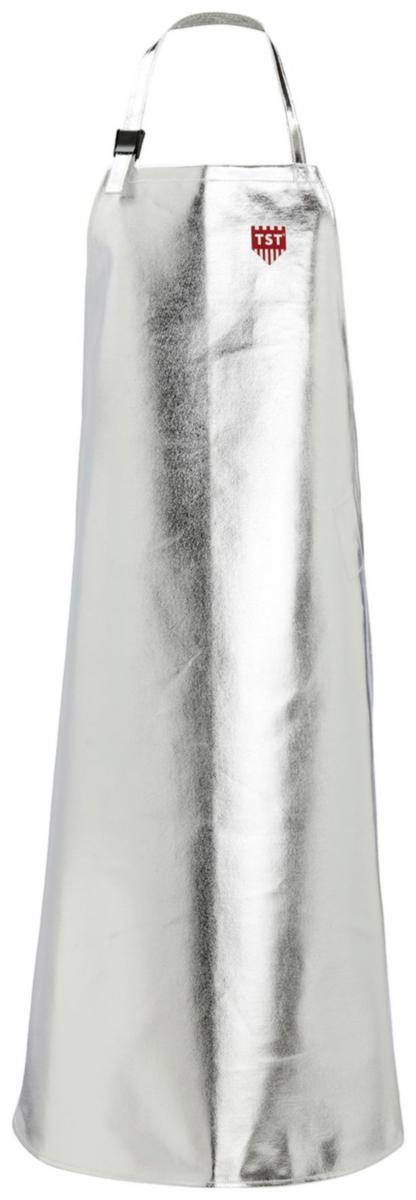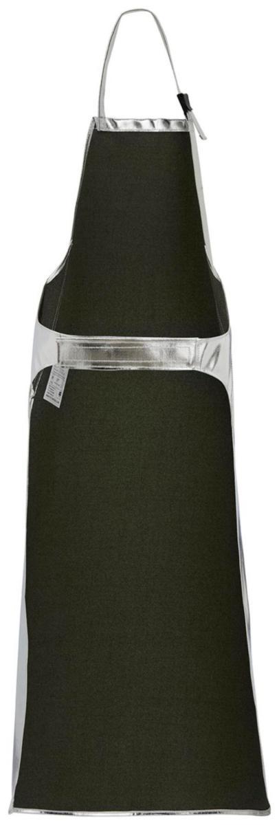 Yksi koko. Säätönauha niskassa. Tarrakiinnitys takana. Pituus 125 cm. Leveys 77 cm. Pesu: Pyyhitään kostealla liinalla. Ei konepesua. Materiaali: 70% Preox, 30% Para-aramidi. Pinnoite: Alumiinifolio. Vastaa vaatimuksia: EN 11612 (A1, B1, C3, D3, E3)