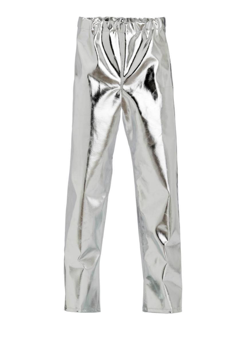 Kaksinkertaiset saumat. Resori vyötäröllä. Tarrakiinnitys lahkeessa. Pesu: Pyyhitään kostealla liinalla. Ei konepesua. Materiaali: 70% Preox, 30% Para-aramidi. Pinnoite: Alumiinifolio.