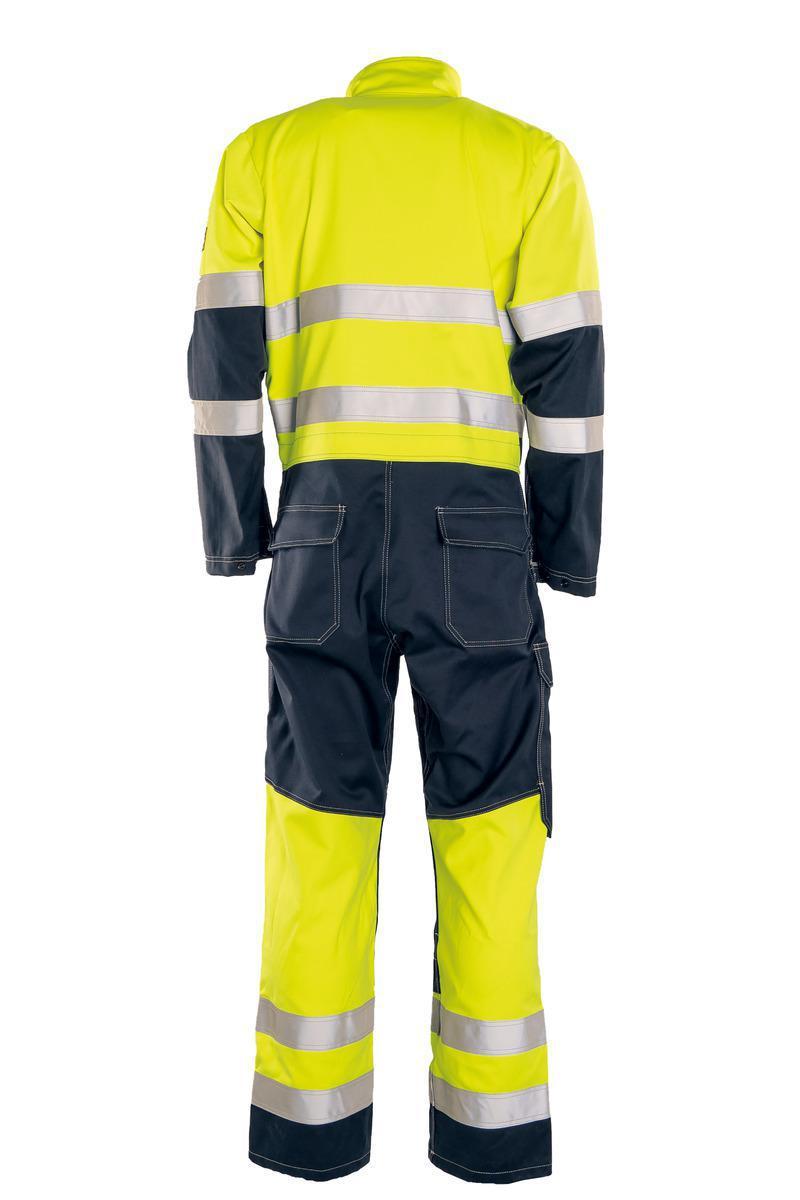 Sisäisesti palosuojattu huomio umpisuoja, hihat ja etuosa Cantex Weld ja takana Cantex Strech. Cantex Stretch takaa hyvän istuvuuden ja antaa lisämukavuutta täydellistä liikkuvuutta vaativissa töissä, kun taas etuosassa Cantex Weld antaa erityisen korkean suojan hitsaus- ja hiontakipinöitä vastaan. Edessä vetoketju ja painonapit. Kiinnikkeet kuulokkeille. Läpälliset rintataskut, työkalupidikkeet ja piilotettu D-rengas. Painonapeilla säädettävät hihansuut. Läpälliset sivutaskut läpivienneillä.Polvisuojataskut, joissa kaksi säätömahdollisuutta. Läpälliset takataskut. Läpällinen tuumamittatasku vahvistetulla pohjalla. Selässä resori. Kontrastisaumat. EN ISO 11612 A1+A2 B1 C1 E3 F1, EN 61482-2 APC 1 ELIM: 12,0 cal/cm² EBT: 16,0 cal/cm², EN 1149-5, EN ISO 11611 CL.2 A1+A2, EN 13034 type PB[6], EN ISO 20471 CL.3.