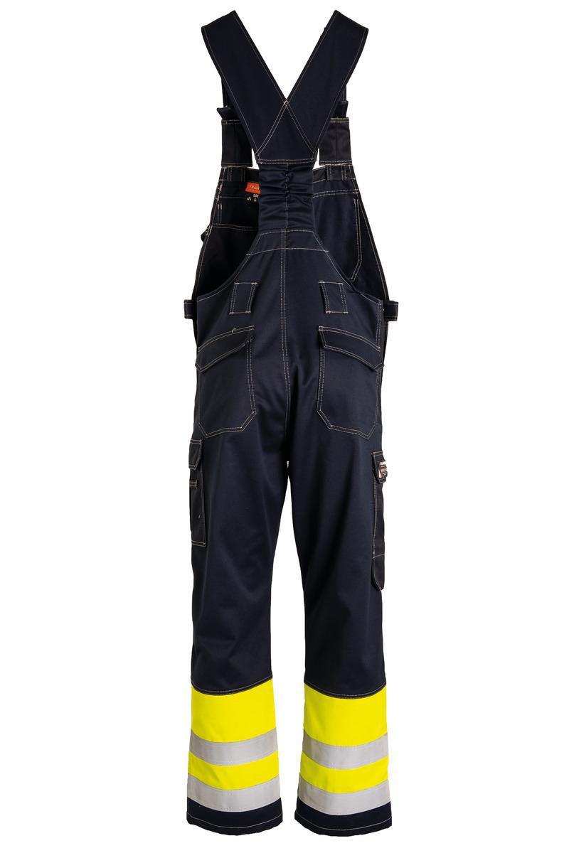 PFAS-vapaa sisäisesti palosuojattu huomio avosuoja jossa etuosassa Cantex Weld ja takana Cantex Strech. Cantex Stretch takaa hyvän istuvuuden ja antaa lisämukavuutta täydellistä liikkuvuutta vaativissa töissä, kun taas etuosassa Cantex Weld antaa erityisen korkean suojan hitsaus- ja hiontakipinöitä vastaan. Säädettävät olkaimet, piilotettu lukitus sekä resori selässä. Edessä vetoketju. Oikea rintatasku läpällä. Piilotetut puukkonapit. Povitasku. Säädettävä vyötärö ja vyölenkit. Sivutaskut. Läpällinen reisitasku, puhelintasku ja piilotettu D-rengas. Läpällinen tuumamittatasku vahvistetulla pohjalla. Polvisuojataskut, joissa kaksi säätömahdollisuutta. Läpälliset takataskut. Kontrastisaumat.