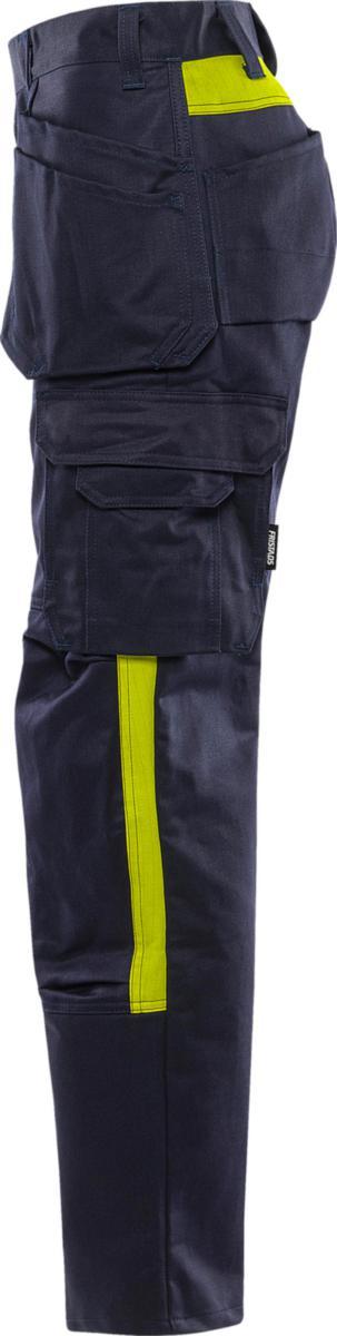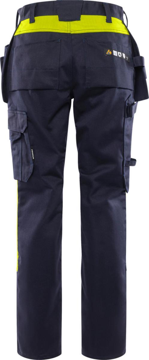 Naisellisella leikkauksella varustetut palosuojatut työhousut kestävästä ja miellyttävästä palosuojakäsitellystä materiaalista. Polvitaskut palosuojattua CORDURAA®. Testattu 50 pesukierrosta teollisessa pesussa.