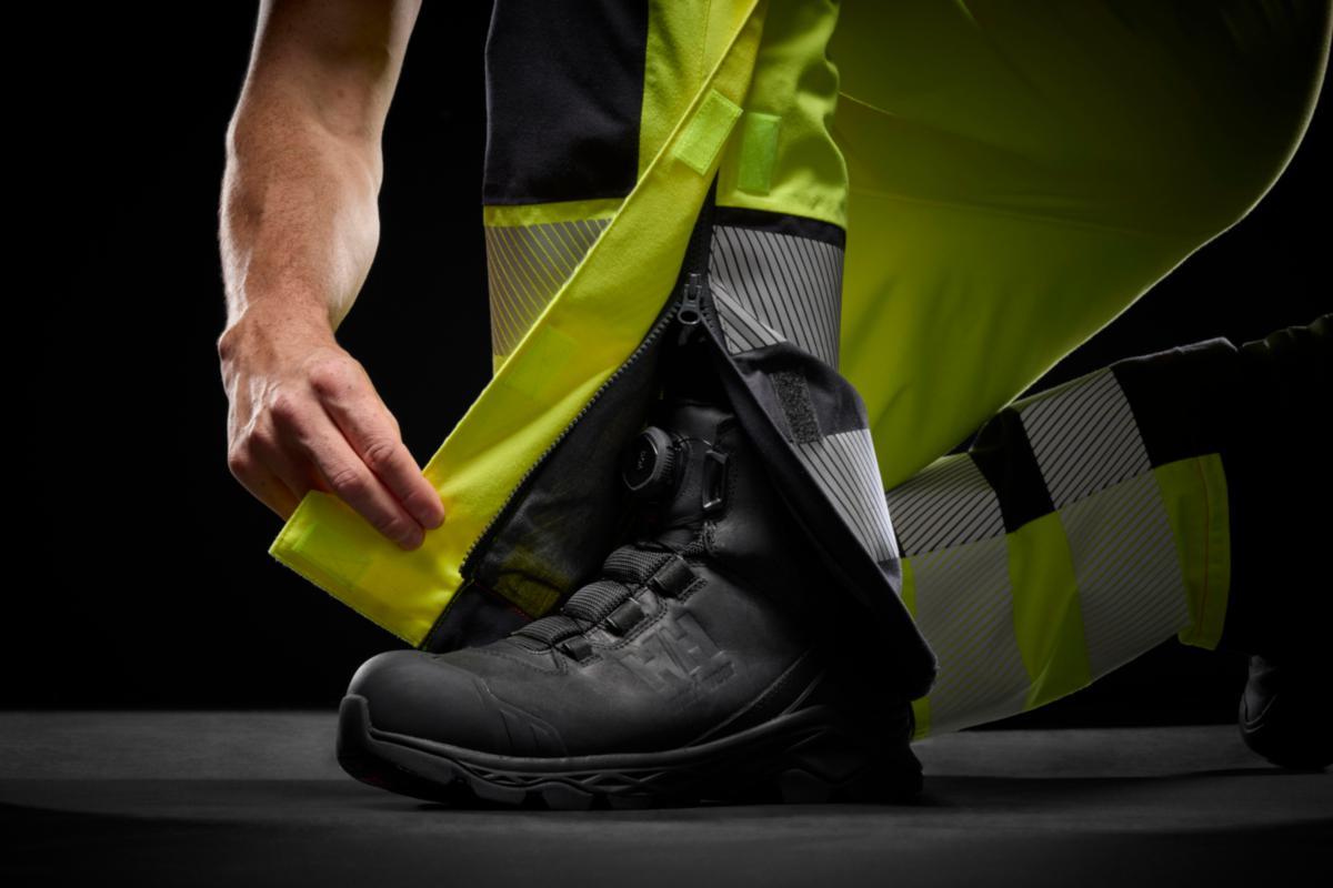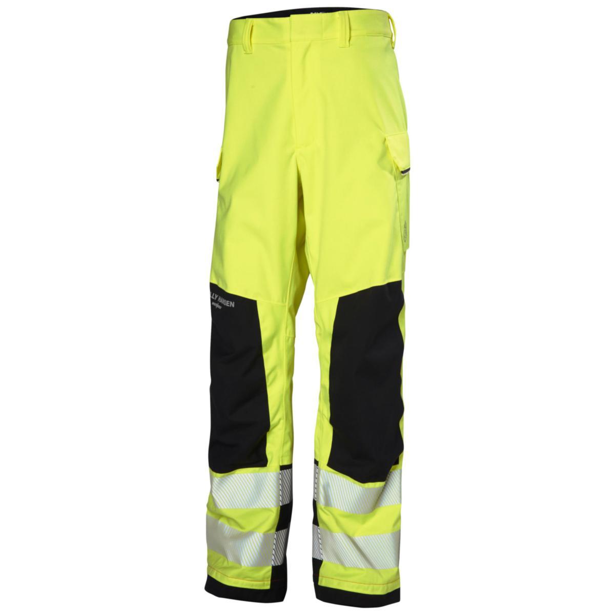 Työhousut on valmistettu HELLY TECH® PERFORMANCE -materiaalista. VizLite DT® -raidat hehkuvat heikossa valaistuksessa ja pimeässä. Housuissa on AMANN-langat ja YKK®-vetoketjut. Helma on säädettävä ja vyötärönauha muotoiltu mukavuuden parantamiseksi. Vyötärön sisäpuolella on lenkki olkaimien kiinnitystä varten. Takana keskellä on leveä, tukeva ja vahva vyölenkki. Reisitaskuissa on tarrasuljenta. Polvisuojataskuihin pääsee sisäpuolelta. Lahkeissa on polven korkeudelle ulottuvat vetoketjut, joissa on myrskyläppä ja tarranauha. Lahkeiden pituutta voi pidentää 5 cm. Housuissa on heijastavia yksityiskohtia ja henkilökorttilenkki.