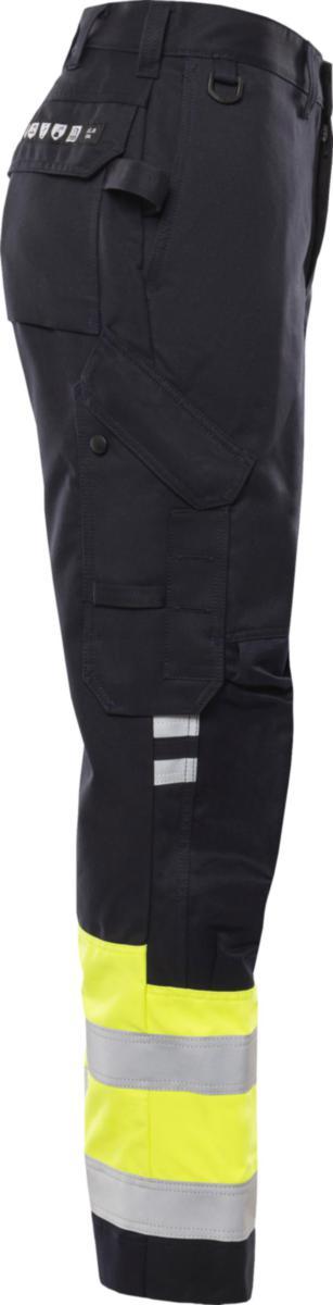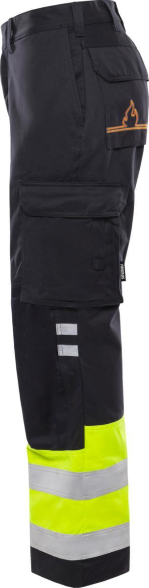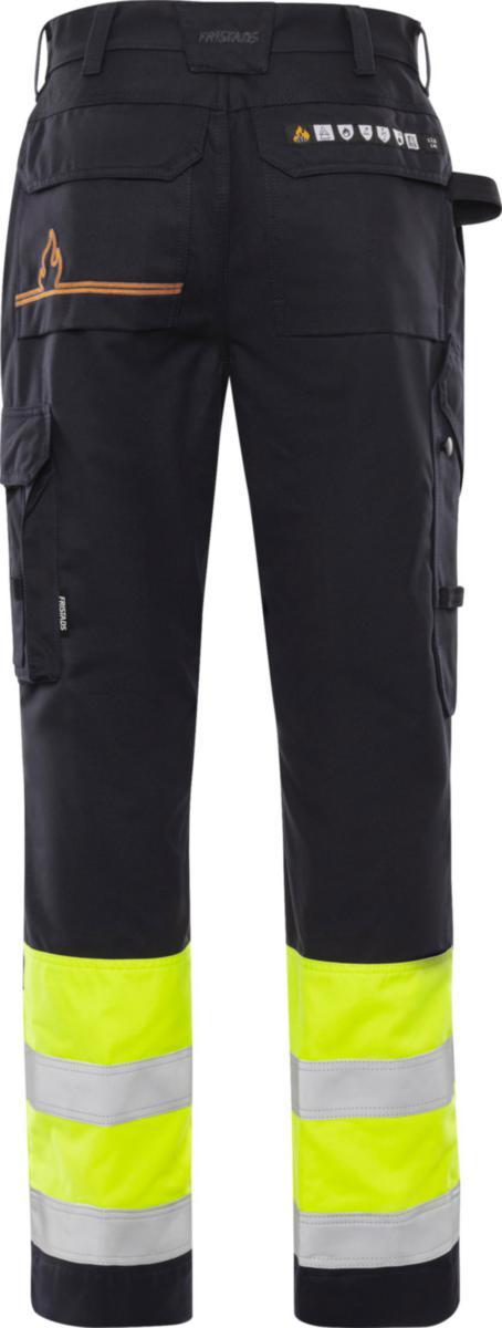 Huomiovaatesertifioidut, itsessään paloturvallisesta materiaalista valmistetut housut. Sopivat ATEX-ympäristöihin, ei metalliosia. Hyväksytty teolliseen pesuun.