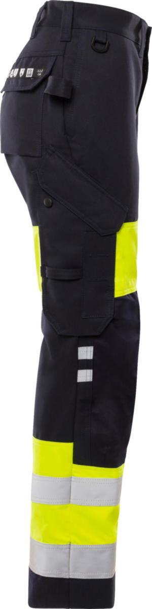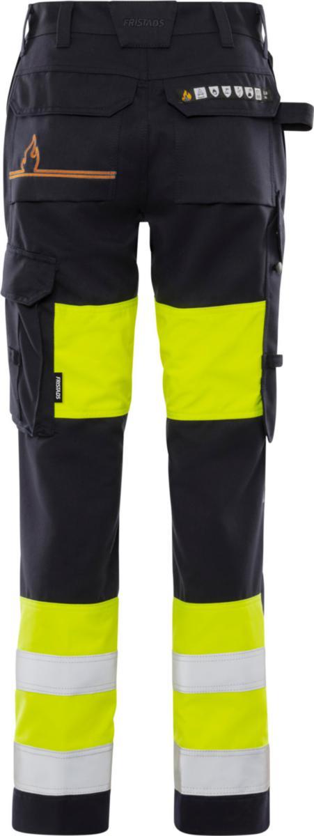 Huomiovaatesertifioidut, itsessään paloturvallisesta materiaalista valmistetut housut. Sopivat ATEX-ympäristöihin, ei metalliosia. Hyväksytty teolliseen pesuun. Naisten malli.