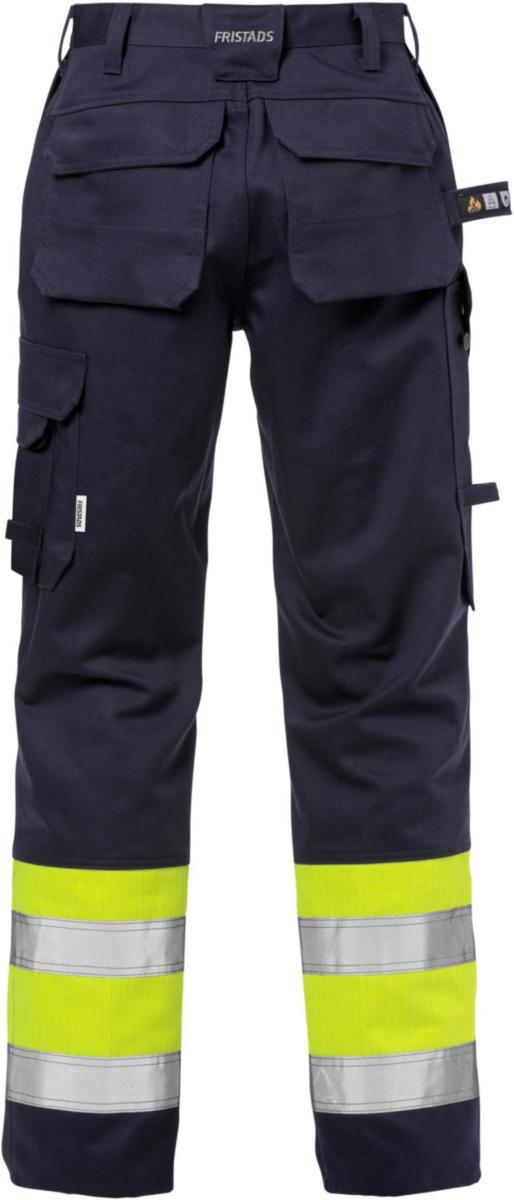 Huomiovaateluokkaan 1 sertifioidut palosuojatut naisten työhousut. Naisten leikkaus. Kestävästä ja miellyttävästä palosuojakäsitellystä materiaalista valmistetut työhousut, joissa palosuojatusta CORDURA®-materiaalista valmistetut polvitaskut. Testattu 50 pesukierrosta teollisessa pesussa.
