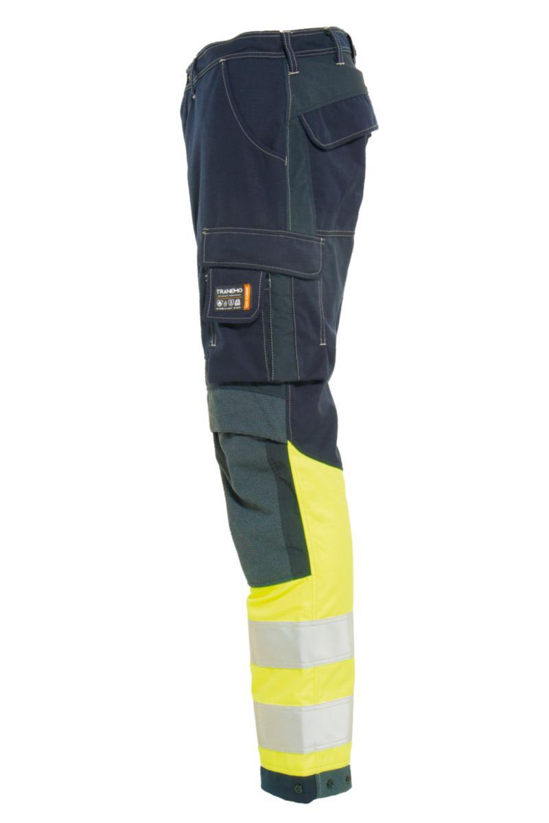 Metallivapaat ja sisäisesti palosuojatut vyötäröhousut, joissa stretch-vyöhykkeet takaavat hyvän istuvuuden ja antavat lisämukavuutta täydellistä liikkuvuutta vaativissa töissä.