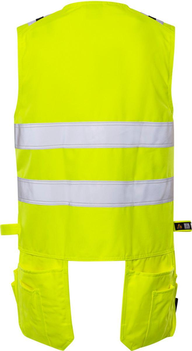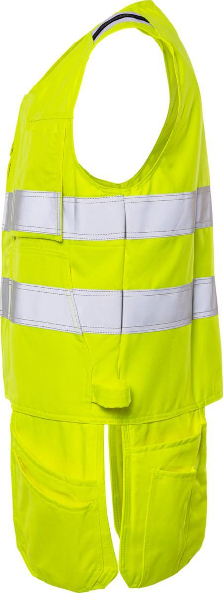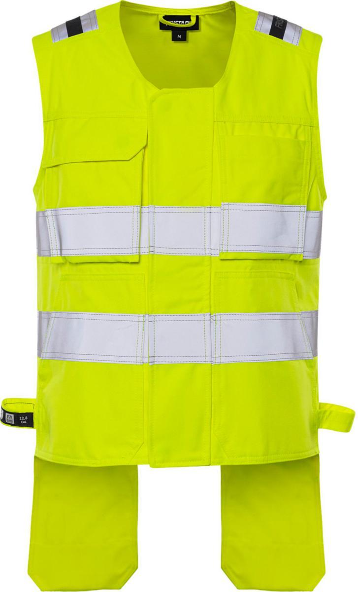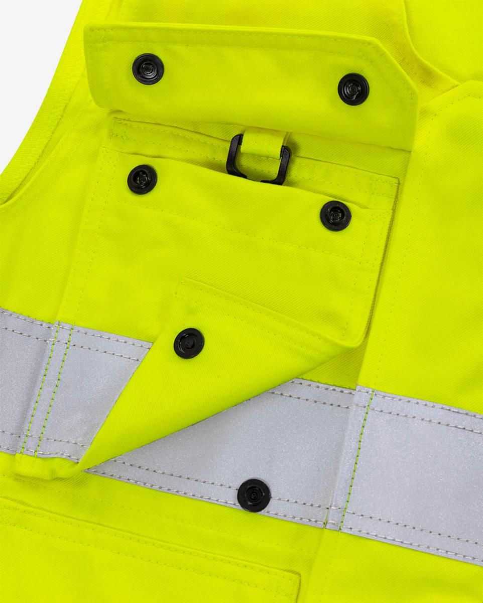 Huomiovaatesertifioitu, itsessään paloturvallisesta materiaalista valmistettu liivi. Sopii ATEX-ympäristöihin, ei metalliosia. Hyväksytty teolliseen pesuun.